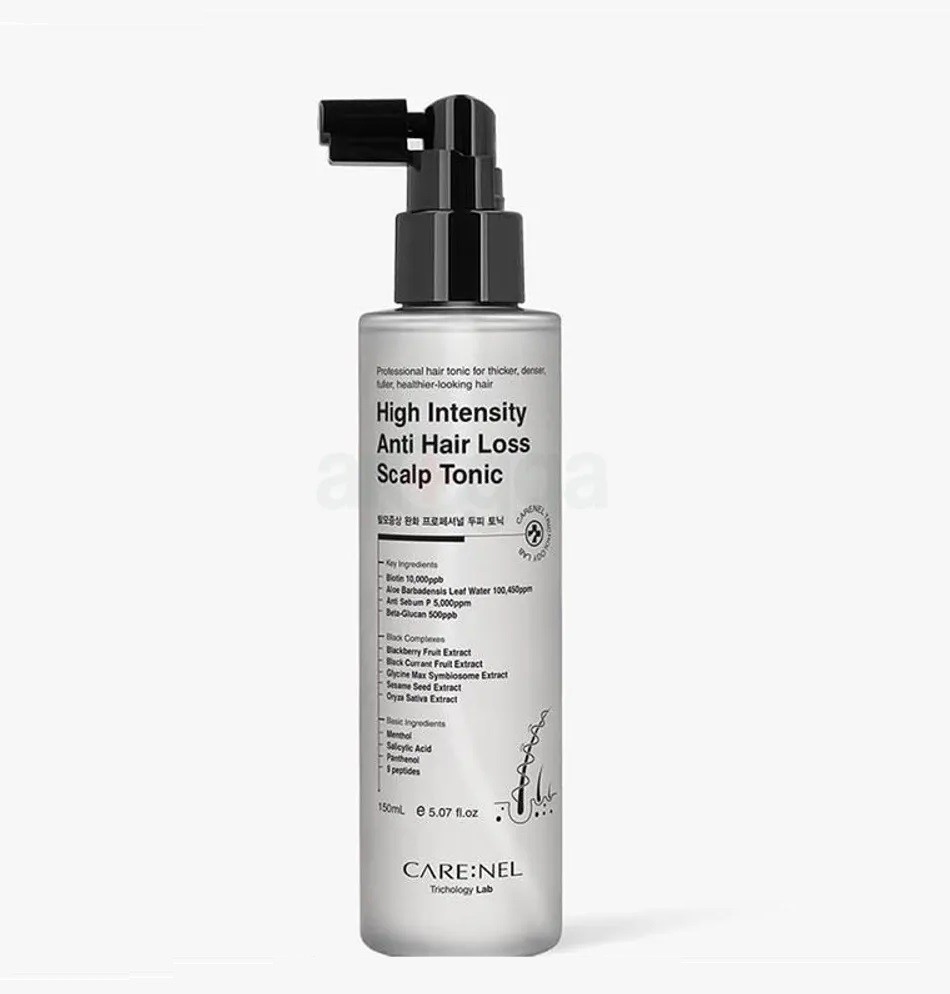The Carenel High Intensity Anti Hair Loss Hair Scalp Tonic is a revitalizing treatment designed to combat hair loss and promote a healthier scalp. Infused with a blend of powerful botanicals, vitamins, and nutrients, this tonic stimulates hair growth while strengthening the hair shaft and improving scalp health.