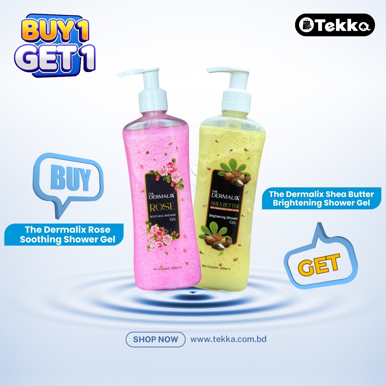 Buy 1 The Dermalix Shea Butter Brightening Shower Gel 250ml & Get 1 The Dermalix Rose Soothing Shower Gel 250ml Free