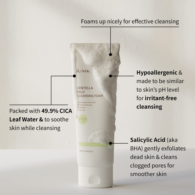 - Free of harsh chemicals: Iunik Centella Mild Cleansing Foam is free of harsh chemicals and fragrances, making it suitable for sensitive skin.