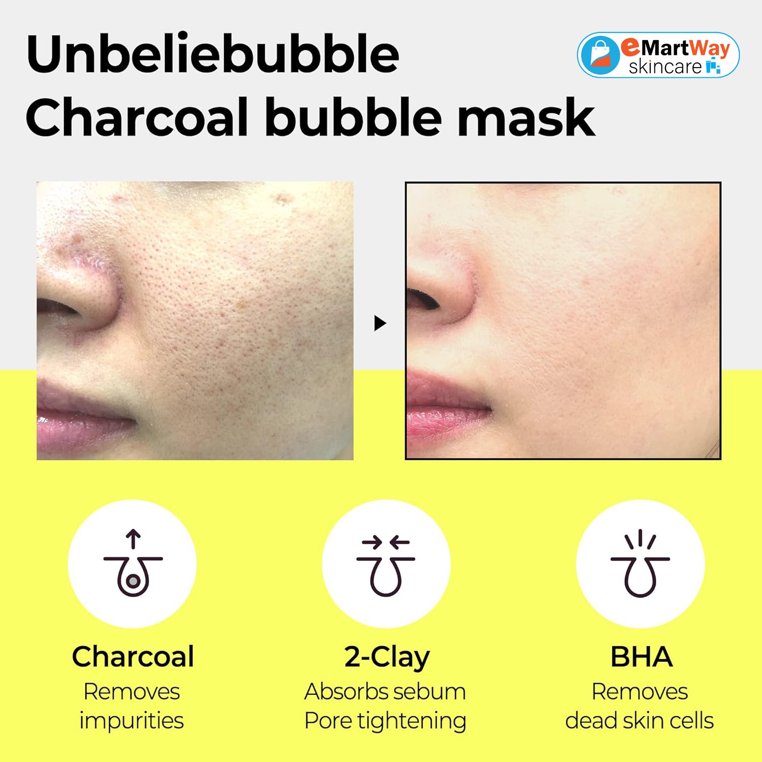 Some By Mi Charcoal BHA Pore Clay Bubble Mask utilize skin calming ingredients, this Some By Mi Charcoal BHA Pore Clay Bubble Mask works to moisturize and relieve any itchy, dry, or irritated skin. Charcoal and clay work together to purify any pores, removing any dirt, impurities, and sebum inside. Maintaining the oil-moisture balance, this Pore Cleanser includes carbonated water to deeply penetrate into the pores to remove any dead skin, sebum, and oil.