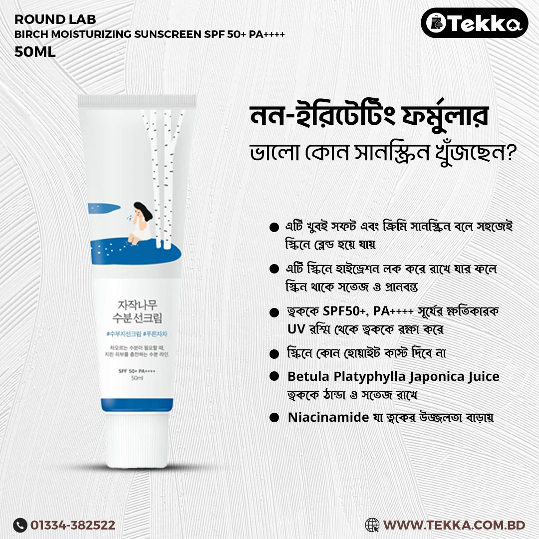 Voted as the best sunscreen in the popular Korean beauty app Hwahae! The Round Lab Birch Juice Moisturizing Sun Cream is a daily sunscreen for all skin types that moisturizes the skin without any heaviness. The lightweight formula contains Birch sap and Hyaluronic acid to tighten the pores, balance, and firm the skin.