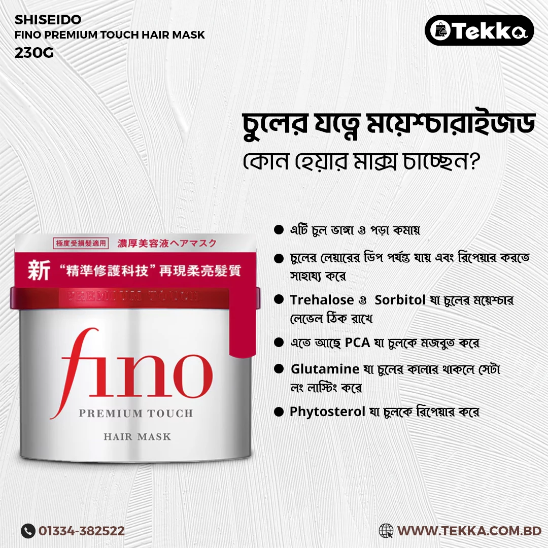Shiseido Fino Premium Touch Hair Mask 230g is designed for effective and fast hair repair. No matter if your hair is naturally dry, damaged by coloring, perming, sun exposure, and/or other environmental factors, FINO Premium Touch Hair Mask is formulated with royal jelly EX, Para- chloroamphetamine, and Lipidure EX that moisturize, strengthen, and repair. With these three major improvements, your hair will look nourished and shiny again.