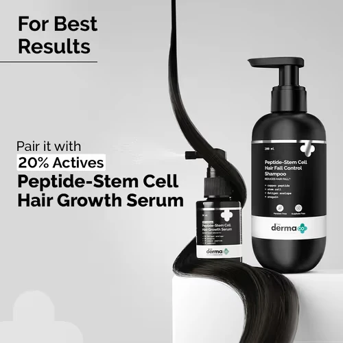 The Derma Co Peptide Stem Cell Hair Fall Control Shampoo Strengthen your hair and reduce hair fall with The Derma Co Peptide Stem Cell Hair Fall Control Shampoo, a science-backed formula enriched with peptides, plant stem cells, and nourishing botanicals. This shampoo cleanses the scalp, strengthens hair roots, and minimizes breakage, promoting thicker, stronger, and healthier-looking hair. Its gentle, sulfate-free formula makes it suitable for daily use on all hair types, including color-treated and sensitive scalps
