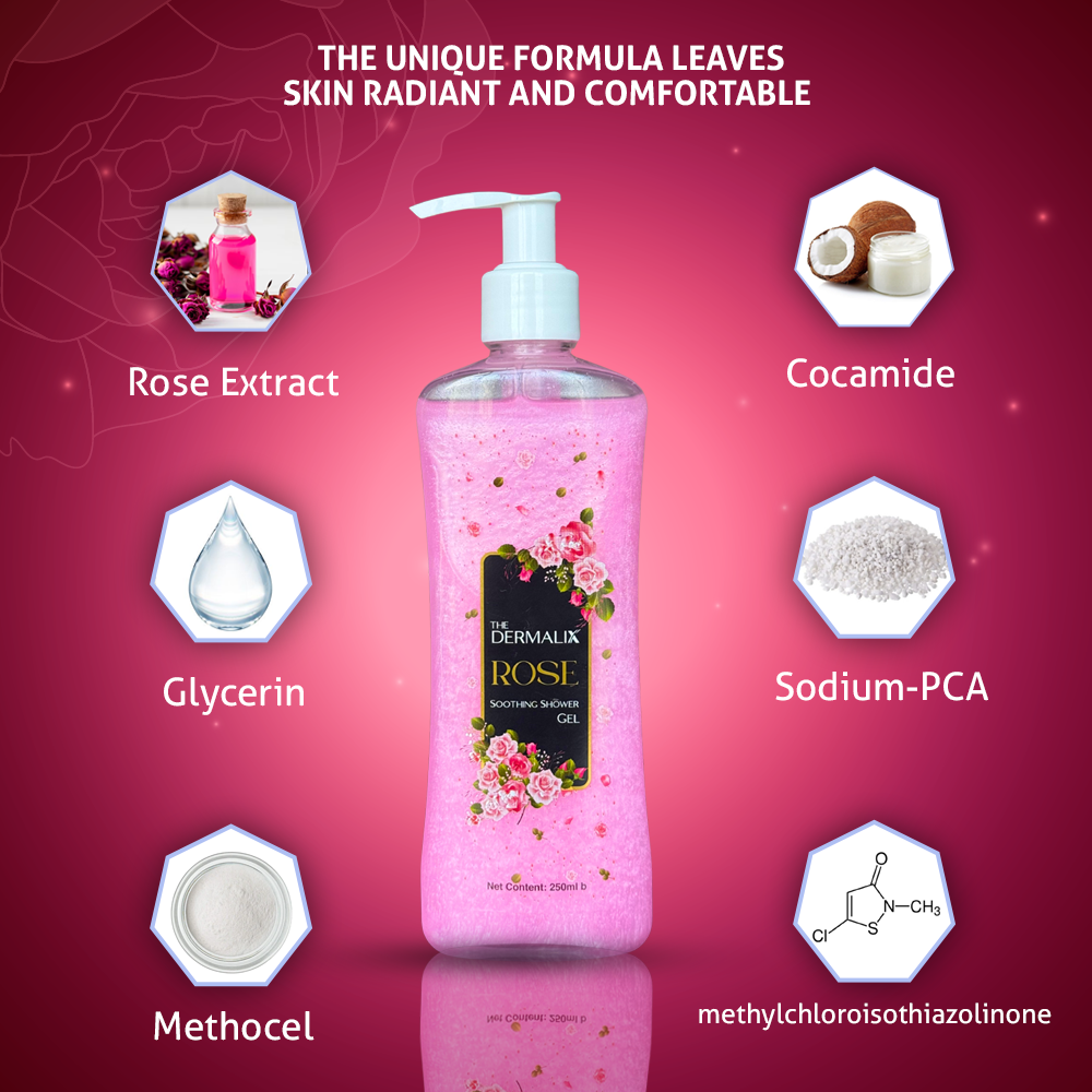 Yes, The Dermalix Rose Soothing Shower Gel is specially formulated for sensitive skin. The rose extract has natural calming properties that help soothe irritation and redness. Our formula is also free from harsh chemicals that can trigger sensitivity.